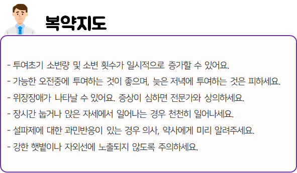 몸에 맞지 않는 의약품의 경우 크고 작은 이상 반응을 불러일으킬 수 있으므로 드시기 전에 반드시 부작용이나 주의사항 등을 미리 확인하시길 바랍니다.
