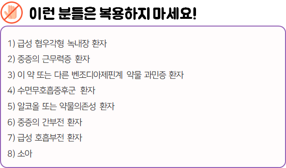 이 의약품은 중추신경을 둔화시켜 수면을 유도함으로써 불면증을 개선하는 약이니 참고하시길 바랍니다.
