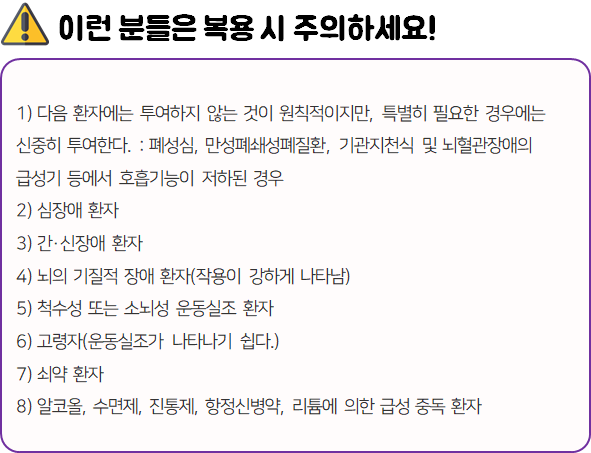 - 다음과 같은 사람들은 의약품 복용 전 참고하시길 바랍니다.
