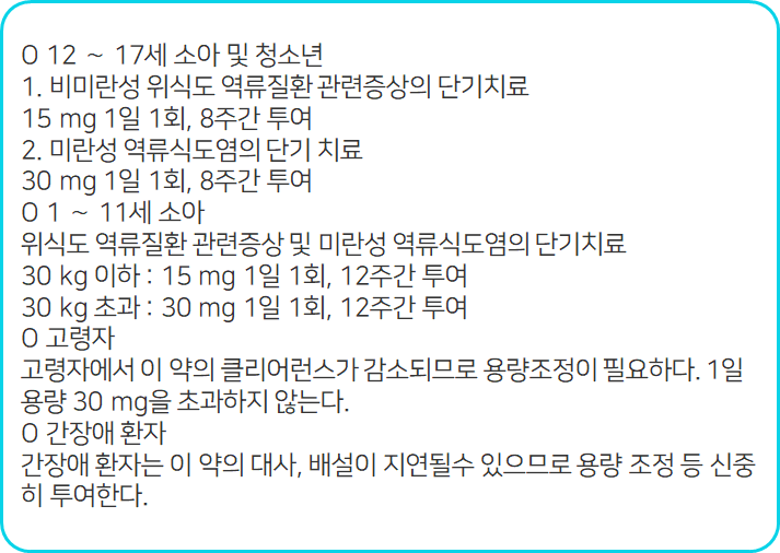 이 의약품은 위산 분비를 감소시킴으로써 위산분비 과다로 인한 각종 소화기 증상을 개선하는 약이니 참고하시길 바랍니다.