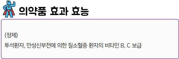 이 의약품은 원활한 대사기능에 필요한 비타민을 공급함으로써 영양결핍으로 인한 여러 증상을 개선해주는 약이니 참고하시길 바랍니다.