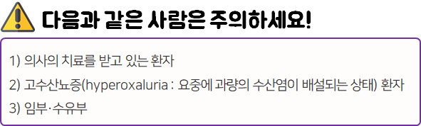 - 다음과 같은 증상을 보이는 사람은 복용 전에 의사 혹은 전문가와 충분한 상담 후 복용하시길 바랍니다.