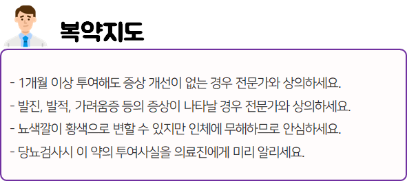 이 의약품은 부작용이나 주의사항 등을 반드시 확인하신 후 안전하게 드시기 바랍니다.