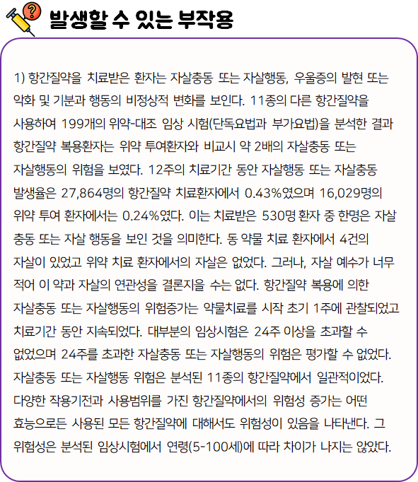 몸에 맞지 않는 의약품의 경우 크고 작은 이상 반응을 불러 일으킬 수 있으므로 드시기 전에 반드시 부작용이나 주의사항 등을 미리 확인하시길 바랍니다.