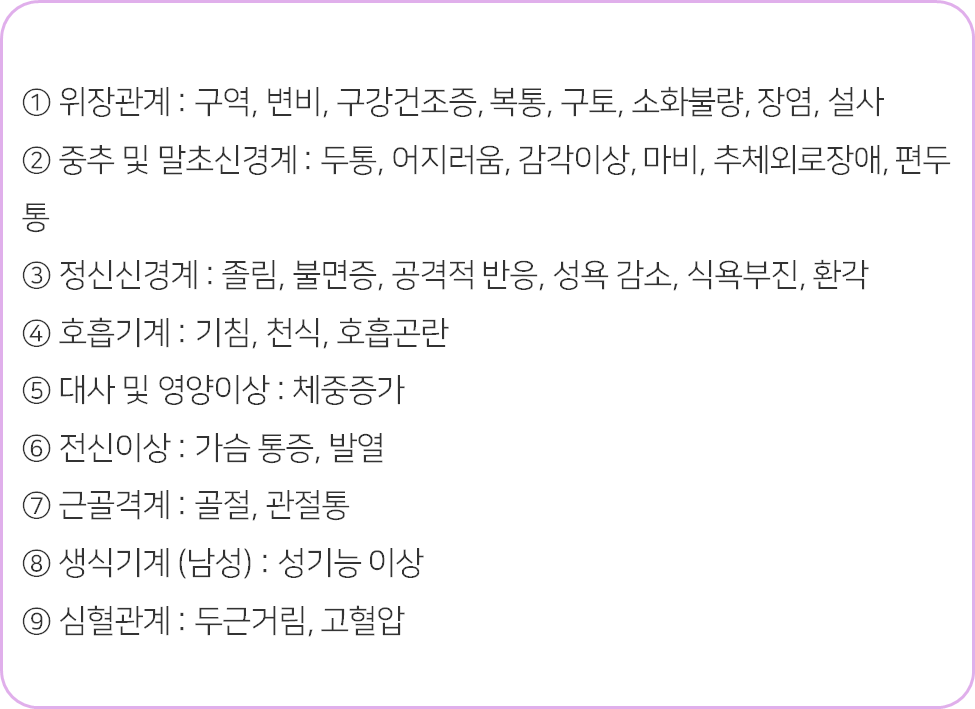 또한 복용 중 이상 반응이 나타나면 즉시 복용을 멈추고, 전문가나 의사와 상담하셔서 복용량을 줄이거나 복용을 멈추시는 것이 좋습니다.