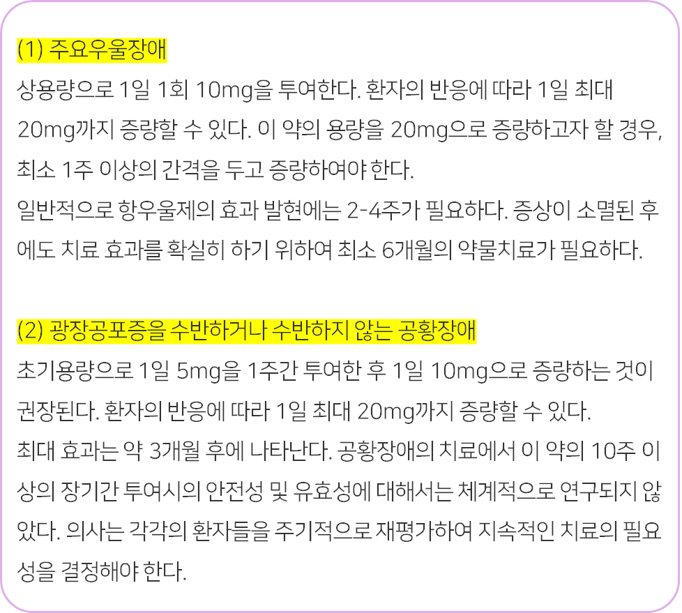 렉사프로정 10mg 복용 시 주의해야 할 사항