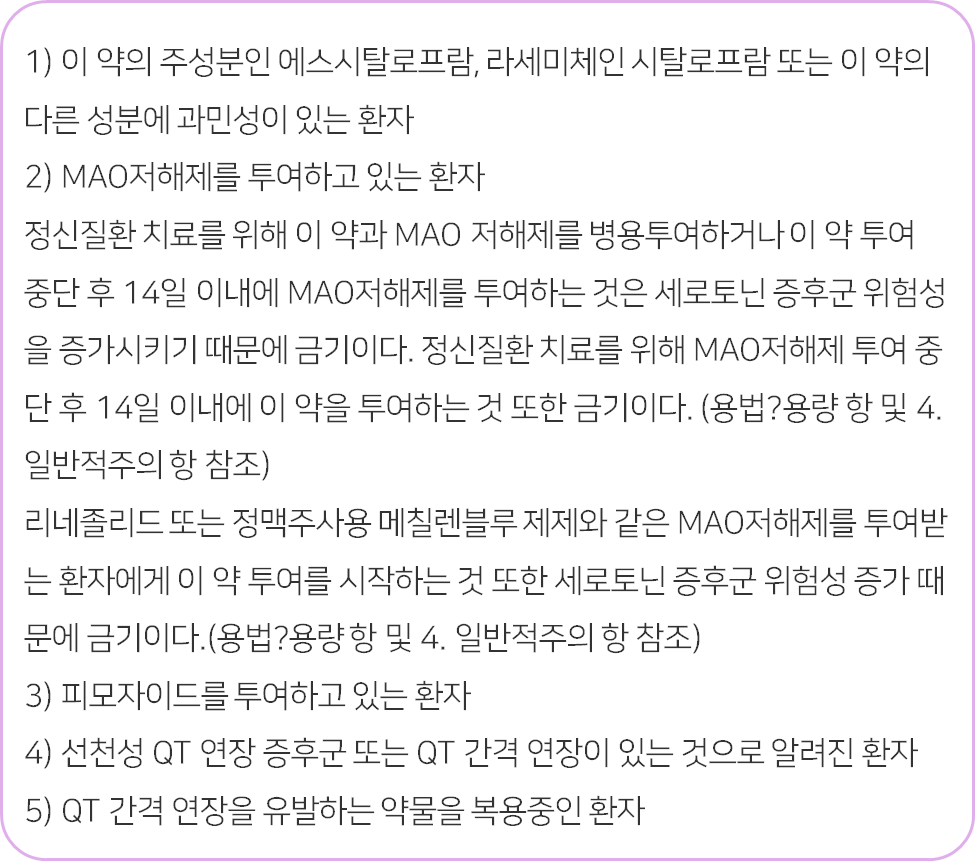 - 다음 환자는 복용 시 위험할 수 있으므로 복용하지 마시길 바랍니다.