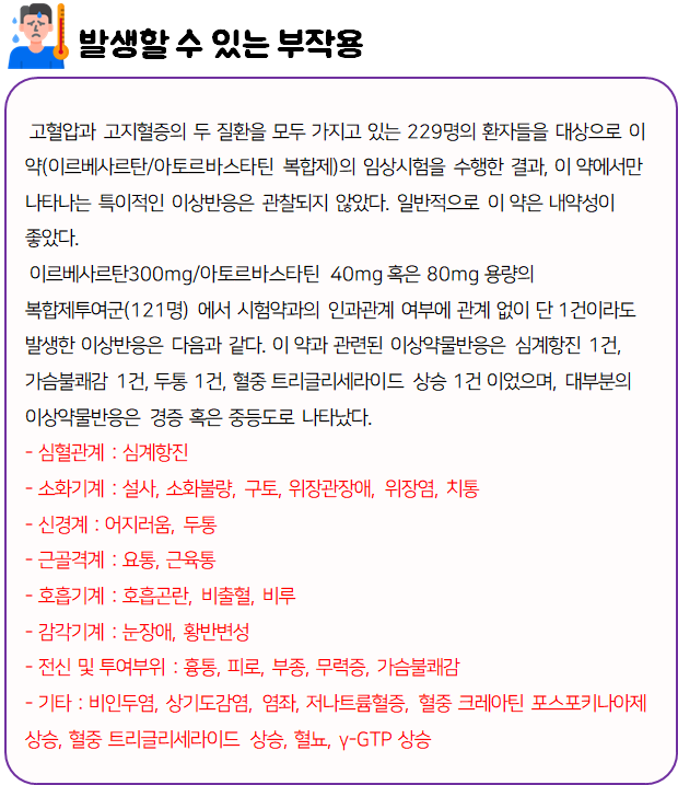 이 의약품은 과도하게 상승된 혈압과 혈중 콜레스테롤 농도를 감소시키는 약이니 참고하시길 바랍니다.