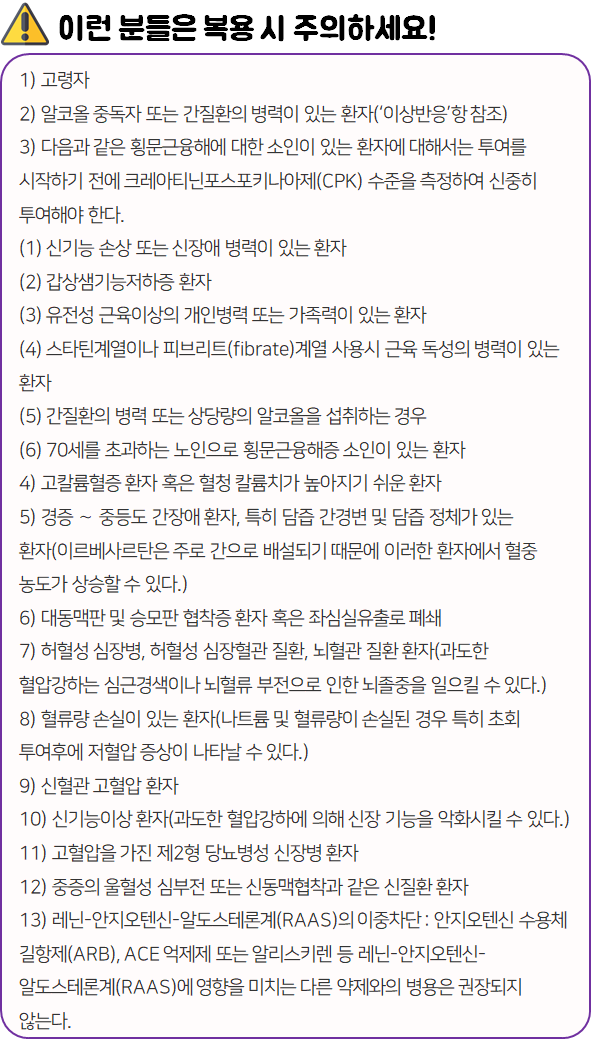 - 다음과 같은 사람들은 의약품 복용 전 참고하시길 바랍니다.