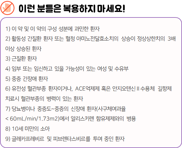 - 다음 환자는 복용 시 위험할 수 있으므로 복용하지 마시길 바랍니다.