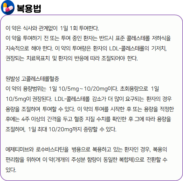 로수바미브정10/5mg 의약품 복약 지도