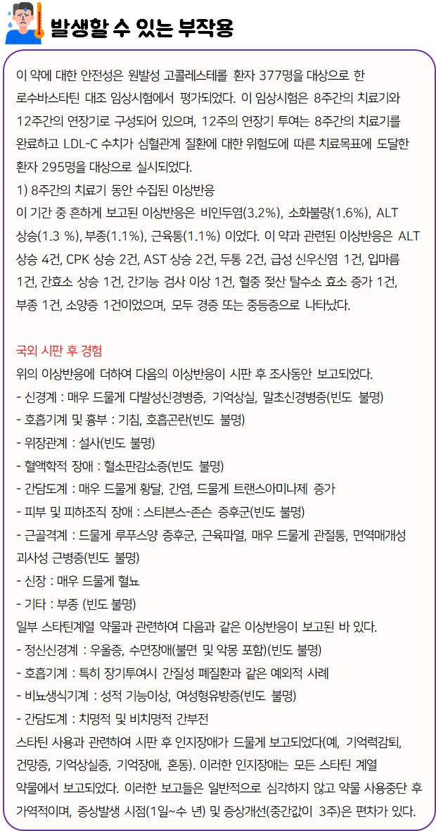 로수바미브정10/5mg을(를) 복용할 시 다음과 같은 부작용이 발생할 수 있으니 주의하시길 바랍니다.