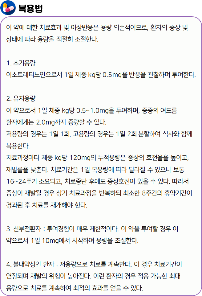 : Isotretinoin : 피부/피하조직질환 > 여드름 치료 > 비타민A 제제