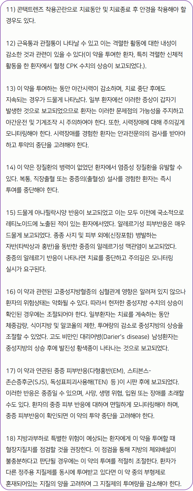 로아큐탄을(를) 복용할 시 다음과 같은 부작용이 발생할 수 있으니 주의하시기 바랍니다.