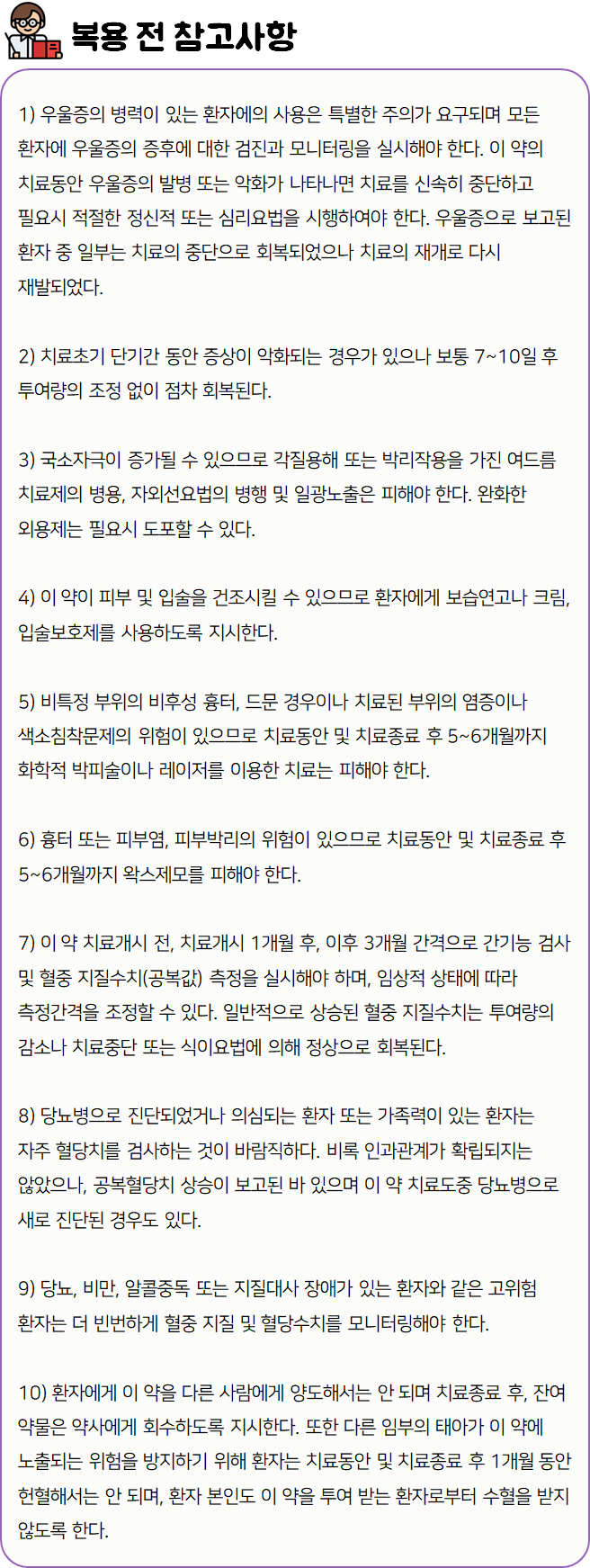 지금까지 로아큐탄에 대해 알려드렸는데요, 의약품은 드시기 전에 반드시 주의사항이나 부작용 등을 미리 체크하시기 바랍니다.
