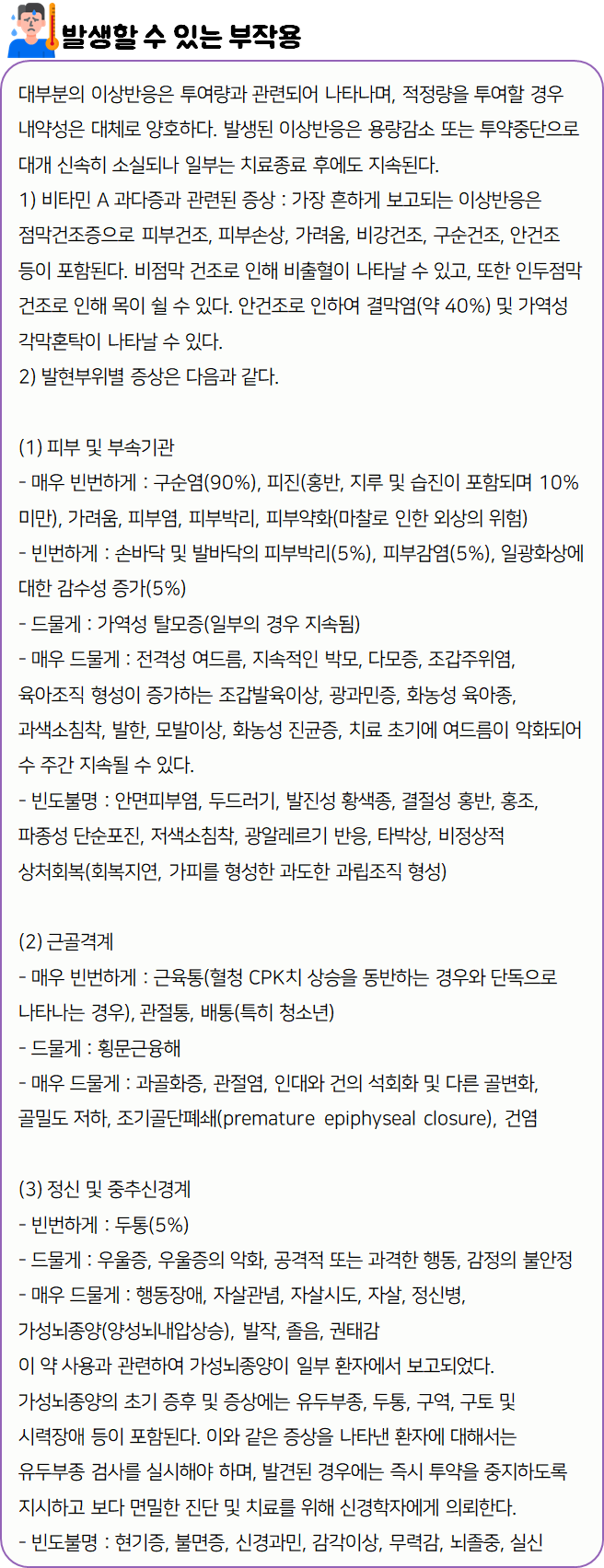 : Isotretinoin : 피부/피하조직질환 > 여드름 치료 > 비타민A 제제