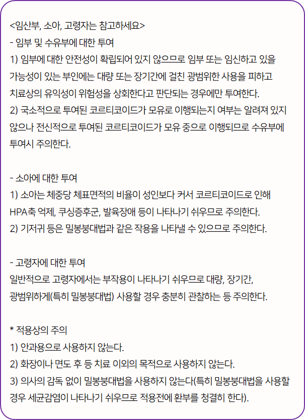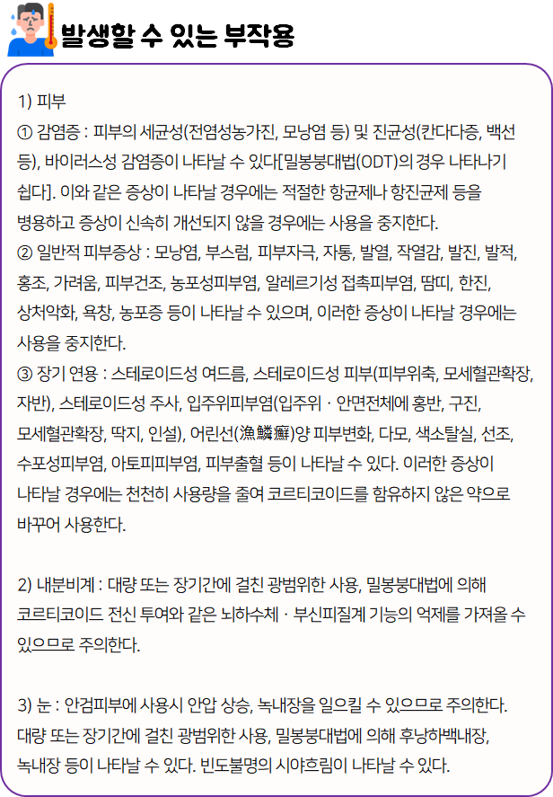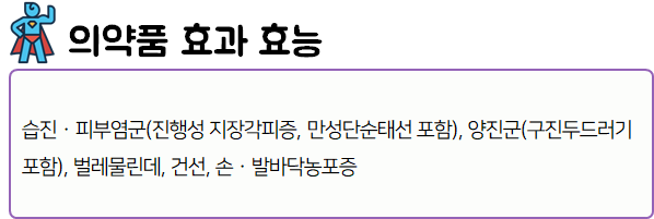 이 의약품은 '항염 및 항소양 작용을 통해 각종 피부질환을 치료하는 약'이니 참고하시길 바랍니다.