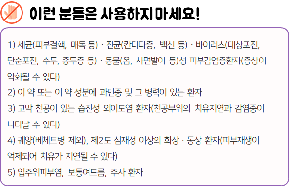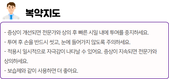 혹시라도 사용 중 부작용이나 각종 이상 반응이 나타나게 되면 즉시 사용을 멈추고, 전문가 혹은 의사와 상담하세요!