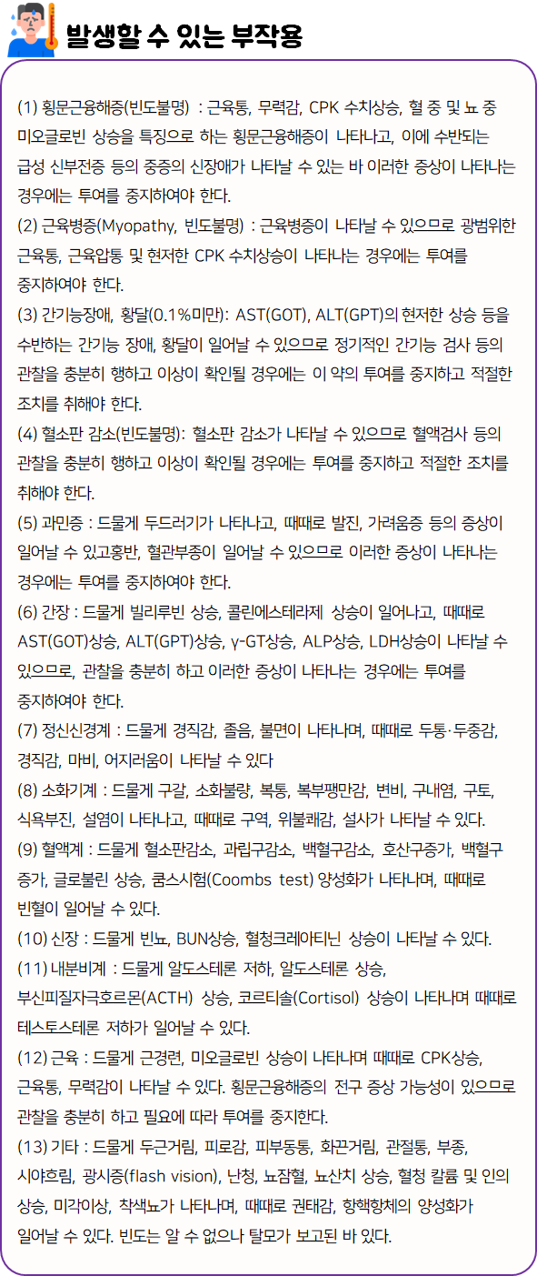 몸에 맞지 않는 의약품의 경우 크고 작은 이상 반응을 불러 일으킬 수 있으므로 드시기 전에 반드시 부작용이나 주의사항 등을 미리 확인하시길 바랍니다.