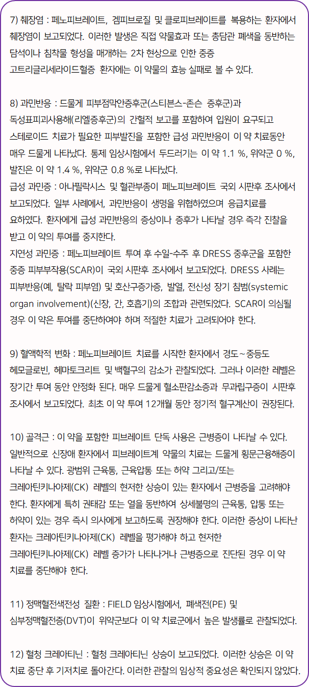 리피딜 슈프라정을(를) 복용할 시 다음과 같은 부작용이 발생할 수 있으니 주의하시길 바랍니다.