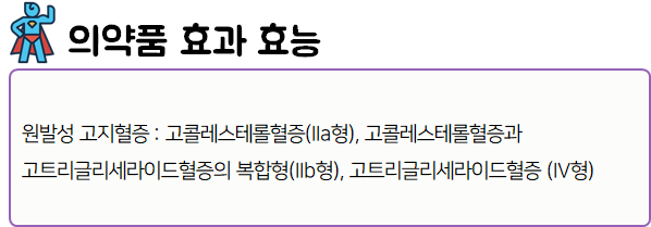 이 의약품은 ' 지단백 지질분해효소의 작용을 활발하게 하여 중성지방과 콜레스테롤을 감소시키는 약'이니 참고하시길 바랍니다.