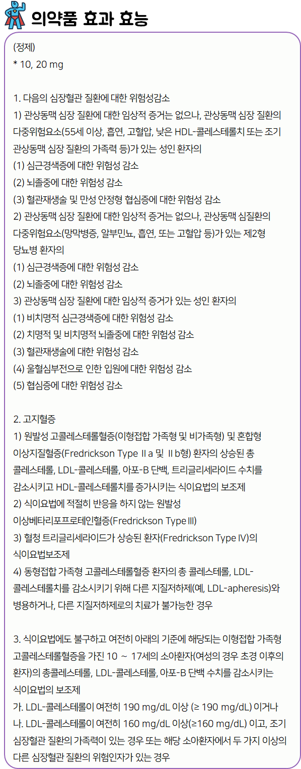 이 의약품은 '콜레스테롤의 합성을 억제하여 혈중 콜레스테롤 농도를 감소시키는 약'이니 참고하시길 바랍니다.