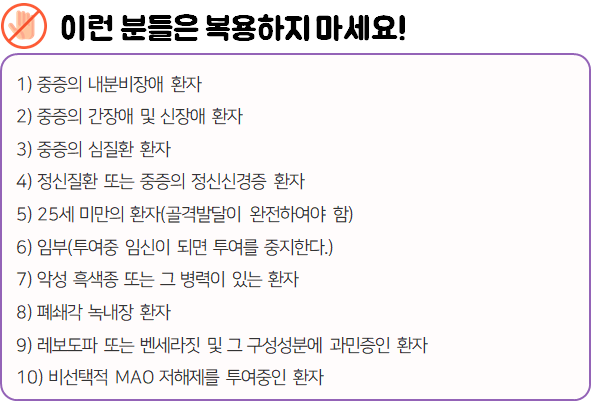 - 다음 환자는 복용 전 전문가 or 의사와 상담 후 복용하시길 바랍니다.