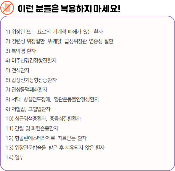 - 다음 환자는 복용 시 위험할 수 있으므로 복용하지 마시길 바랍니다.