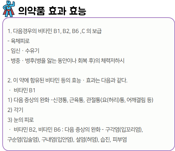 이 의약품은 원활한 대사기능에 필요한 각종 영양분을 공급하는 비타민제이니 참고하시길 바랍니다.