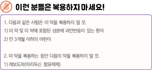 - 다음 환자는 복용 시 위험할 수 있으므로 복용하지 마시길 바랍니다.