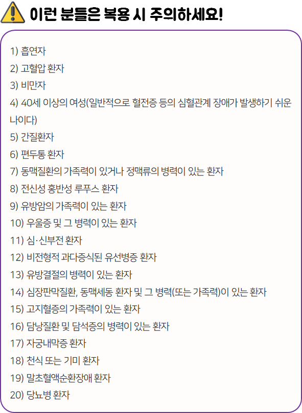 - 다음과 같은 사람은 복용 시 위험할 수 있으므로 복용하지 마시길 바랍니다.