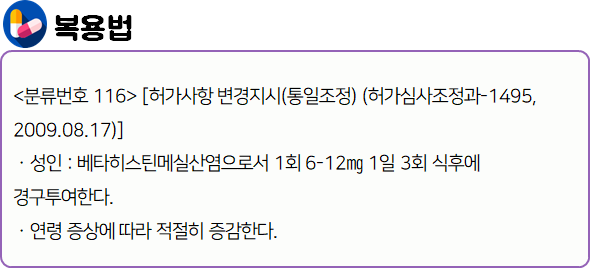 : Betahistine Mesilate : 신경계 질환 > 어지럼증 치료제 > 혈액순환 개선