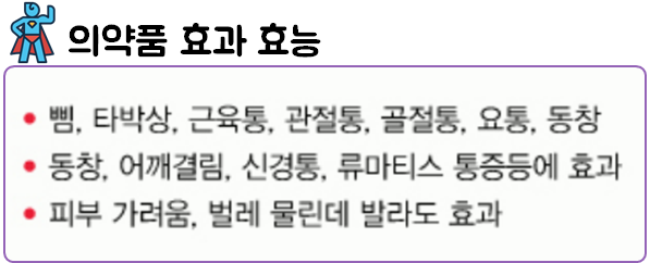 : 개개의 기관계용 의약품 > 외피용약 > 진통, 진양, 수렴, 소염제