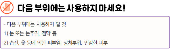 - 다음과 같은 부위에는 위험할 수 있으므로 사용하지 마시길 바랍니다.