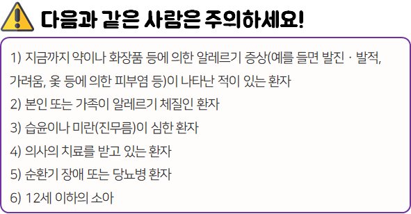 - 다음과 같은 사람은 사용 전, 의사 혹은 전문가와 충분한 상담 후 사용하시길 바랍니다.