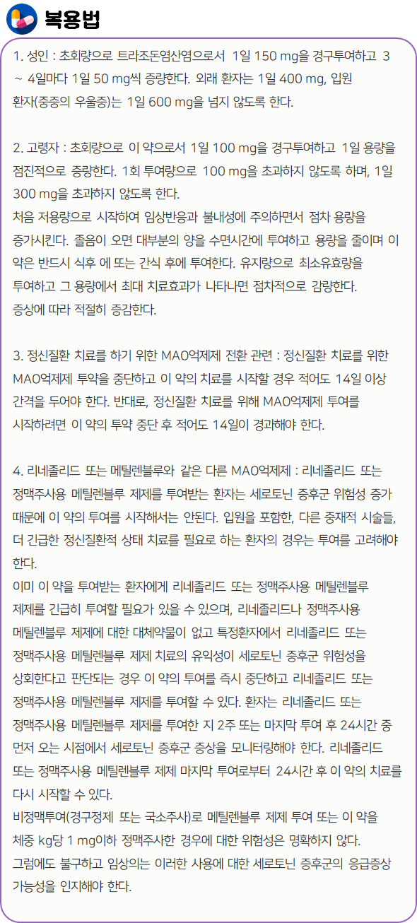 명인트라조돈캡슐25mg 복용 시 주의해야 할 사항