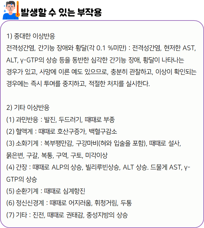 - 이 약을(를) 복용할 시 다음과 같은 부작용이 발생할 수 있으니 주의하시길 바랍니다.