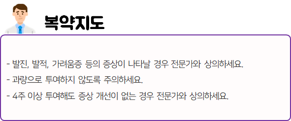 또한 복용 중 이상 반응이 나타나면 즉시 복용을 멈추고, 전문가나 의사와 상담하셔서 복용량을 줄이거나 복용을 멈추시는 것이 좋습니다.