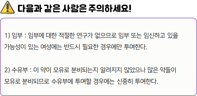 - 다음과 같은 사람은 복용 시 위험할 수 있으므로 복용하지 마시길 바랍니다.