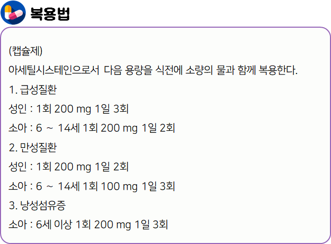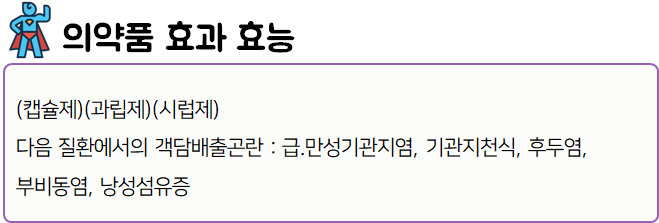 이 의약품은 점액용해 작용을 나타냄으로써 호흡기질환에서의 객담배출 곤란증상을 개선하는 약이니 참고하시길 바랍니다.
