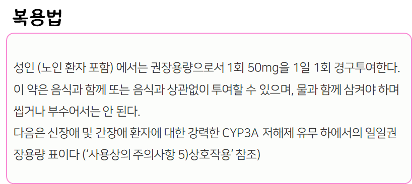 미라벡 서방정 50mg 복용 시 주의사항