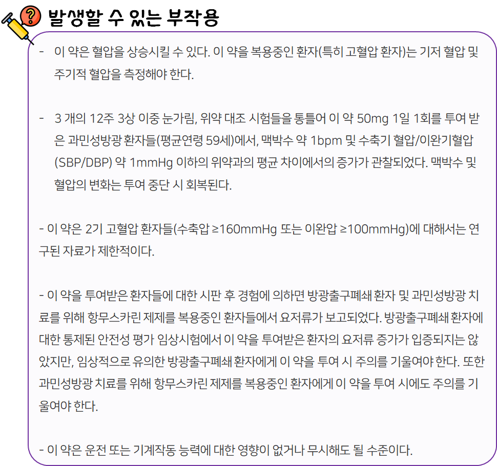 미라벡 서방정 50mg 효과 부작용 주의사항