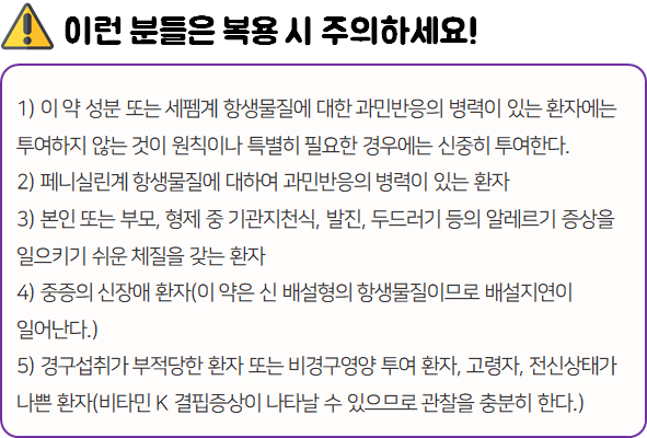 - 다음과 같은 사람들은 의약품 복용 전 참고하시길 바랍니다.