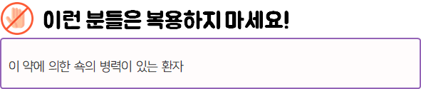 - 다음 환자는 복용 시 위험할 수 있으므로 복용하지 마시길 바랍니다.