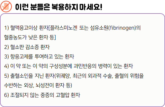 - 다음 환자는 복용 시 위험할 수 있으므로 복용하지 마시기 바랍니다.