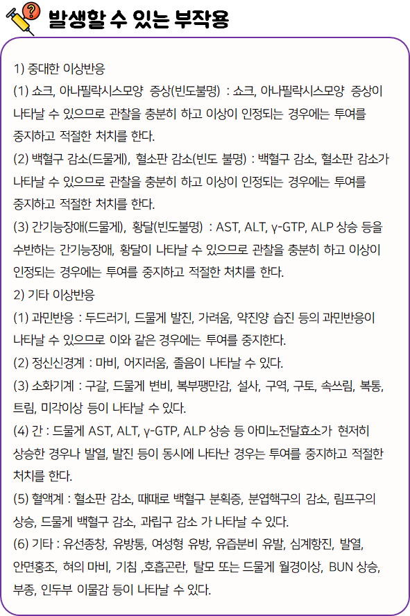 몸에 맞지 않는 의약품의 경우 크고 작은 이상 반응을 불러 일으킬 수 있으므로 드시기 전에 반드시 부작용이나 주의사항 등을 미리 확인하시길 바랍니다.