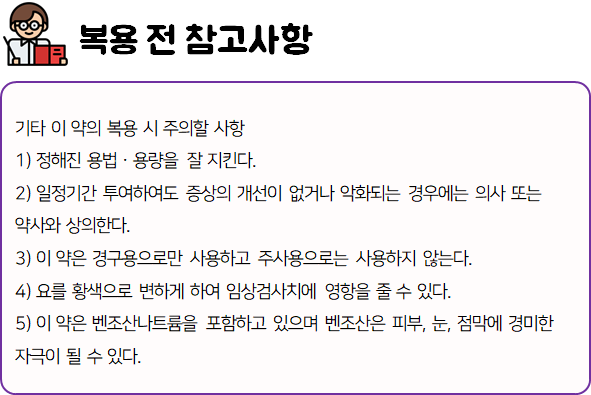 의약품은 반드시 복용 전에 복용 시 발생할 수 있는 부작용이나 주의사항 등을 미리 확인하신 후 드셔야 안전하게 먹을 수 있습니다.