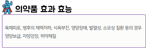 이 의약품은 신진대사기능을 회복시켜 정신적, 육체적 활력을 증강시키는 약이니 참고하시길 바랍니다.
