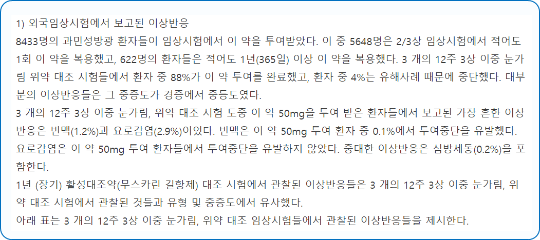 * 베타미가 서방정 50mg을 복용할 시, 다음과 같은 부작용이 발생할 수 있으니 주의하시길 바랍니다.