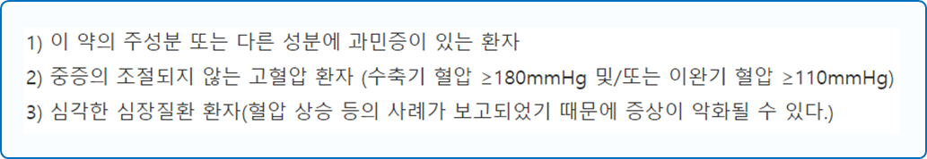 - 다음 환자는 복용시 위험할 수 있으므로 복용하지 마시길 바랍니다.